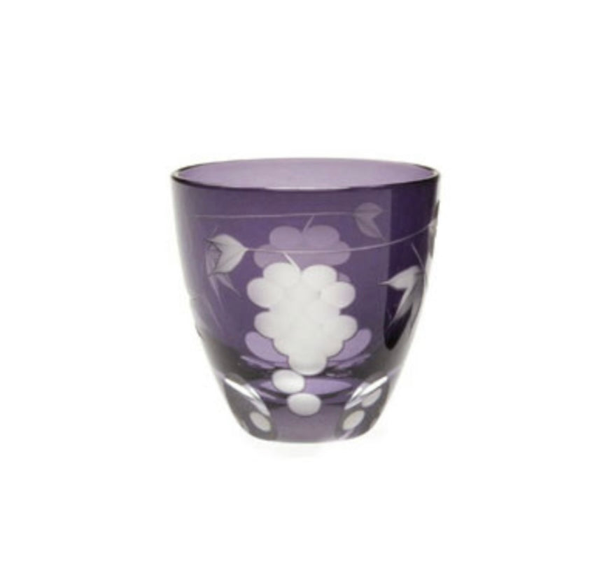日本製 伝統の江戸切子 木本硝子 葡萄文様 丸ぐいのみ 紫 (100ml) / 闈本製 傳統江戶切子 木本硝子 葡萄圖案圓形清酒杯 紫色 (100毫升)