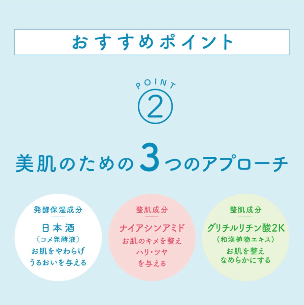 - 主成分表示:水、甘油、膨潤土、肉荳蔻酸、硬脂酸、丁二醇、二氧化鈦、氫氧化鉀、月桂酸、PEG-150 二硬脂酸酯、甘油硬脂酸酯(SE)、椰油醯胺丙基甜菜鹼、米發酵濾液、海泥、水解清酒糟、菸鹼醯胺、甘草酸二鉀、酵母菌/薏苡仁發酵濾液、抗壞血酸葡糖苷、糖鞘脂、乳酸桿菌/蓮子發酵濾液、柑橘皮萃取物、柚子果萃取、染井吉野葉萃取物、透明質酸鈉、米糠油、植物固醇/辛基十二烷基月桂酰谷氨酸酯、生育酚、高嶺土、甲基椰油酰基牛磺酸鈉。硬脂酸乙二醇酯、五鈉鹽、苯氧乙醇